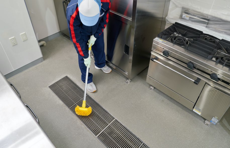 石鹸水による洗浄効果で、悪臭の元となる油や汚泥を徹底的に除去し、除菌効果で衛生的な環境を維持します。